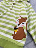 ۶-۹ ماه : قد بلوز ۳۰، پهنا۲۸، قد آستین از کنار یقه ۳۰، دورکمر شلوار ۲۲، قد شلوار۴۰