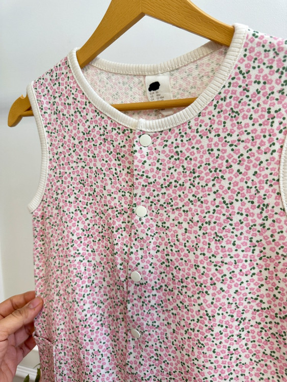 این سرهمی نوزادی با طرح گلهای کوچک، انتخابی ایدهآل برای کپدکان ۴ ماه تا ۴ سال است. جنس پارچه دورس پنبه نرم و تنفسپذیر آن، راحتی و آزادی حرکت نوزاد شما را تضمین میکند. طراحی بدون آستین و دکمههای جلو، تعویض لباس را آسانتر میکند و از هر زاویهای ظاهری شیک و دوستداشتنی به نوزاد شما میبخشد