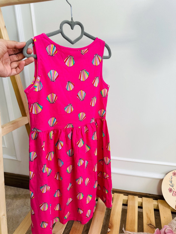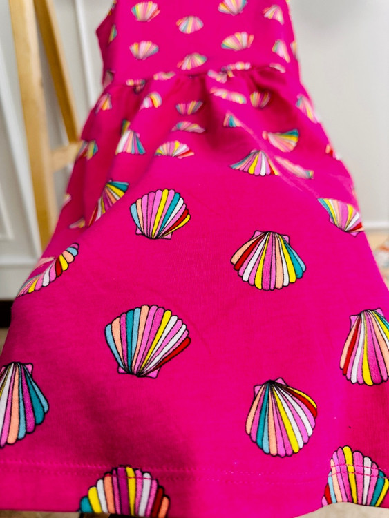 این پیراهن از جنس نخ پنبهای بسیار لطیف دوخته شده و پوست حساس بچهها رو اذیت نمیکنه. طراحی صدفیش و رنگ سرخابی دلبرش، حال و هوای بهار رو به استایل دخترای خوشگل شما میده.