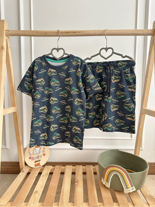 ست تیشرت و شلوارک پسرانه با طرح ماشین غول آسا
