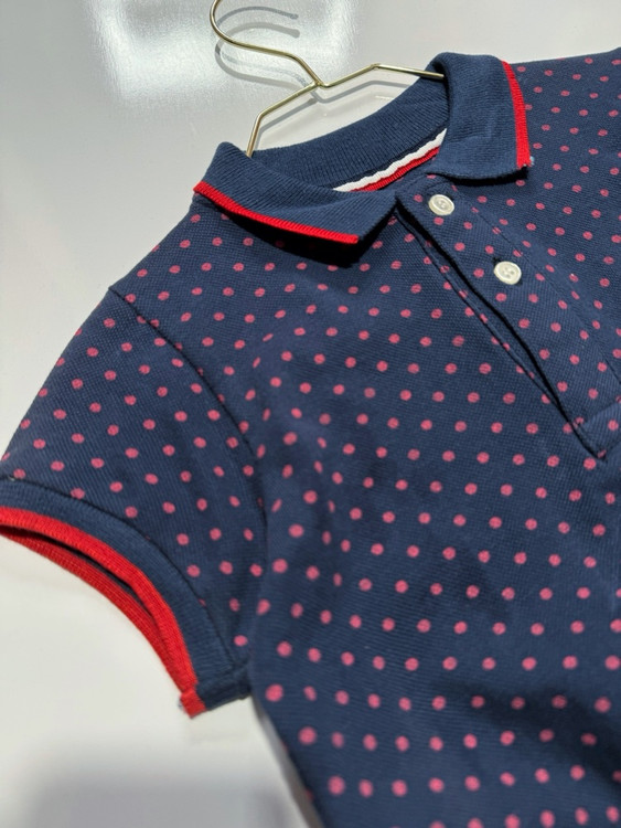 این تیشرت یقهدار شیک از برند Next، با پارچهی جودون باکیفیت و طرح خالخالی قرمز روی زمینه سورمهای، یه انتخاب فوقالعادهست برای استایل نیمهرسمی و روزمره پسر کوچولوی شما.