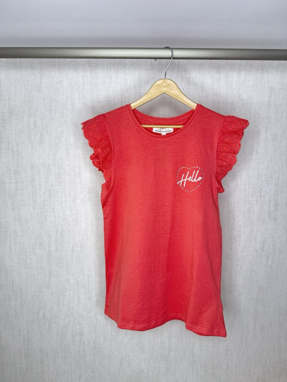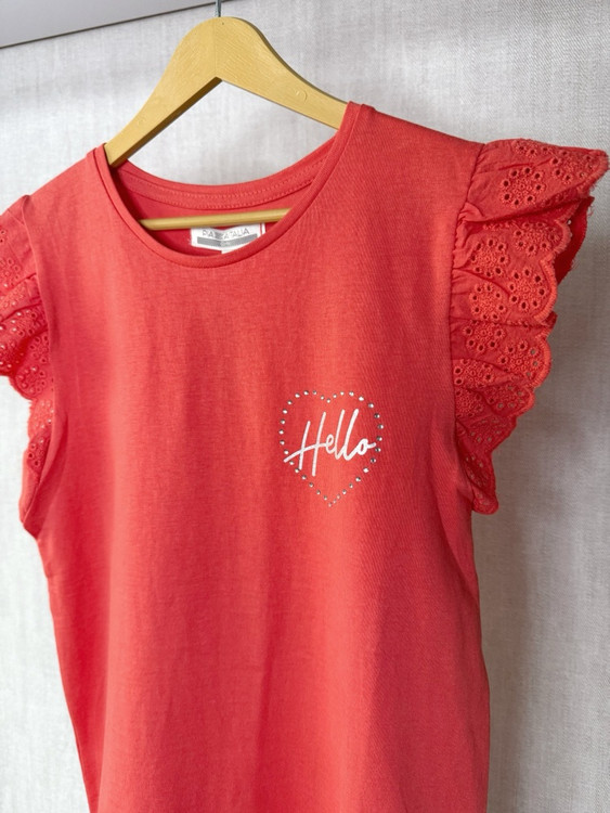 این تاپ با پارچه نخی نرم و تنفسپذیر، آستینهای گیپوری خوشفرم، و نوشتهی “Hello” روی سینه، انتخابی عالی برای دخترهای ۴ تا ۱۴ سالهست. هم مناسب گردش و مهمونی، هم برای پوشیدن روزمره.