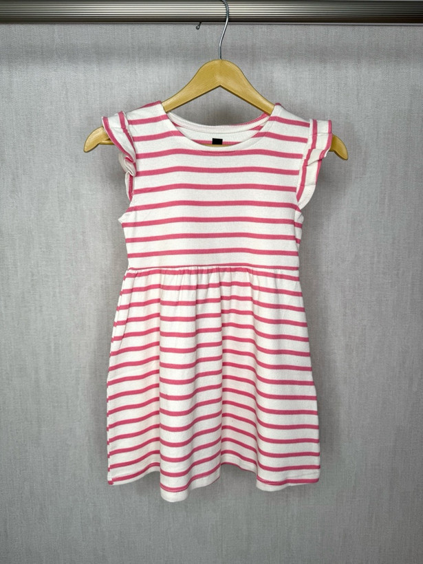 پیراهن دخترانه راهراه H&M – جنس کبریتی لطیف | سایز ۱.۵ تا ۱۲ سال