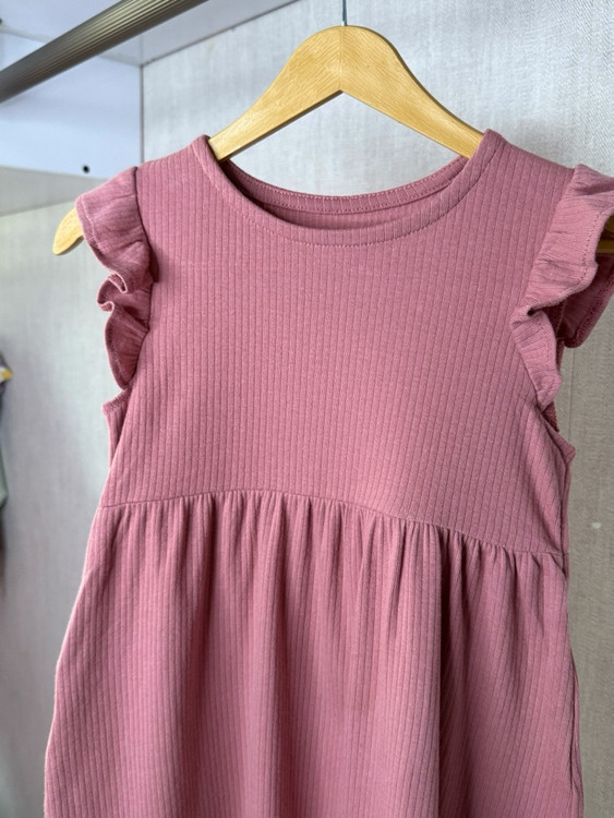 پیراهن دخترانه ساده کبریتی – رنگ رز خشک | سایز ۱.۵ تا ۱۰ سال