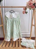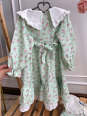 یقهی بزرگ با چینهای ظریف و بند روبانی جلوش، استایل کلاسیک و کودکانهای میده که هم برای مهمونی و هم برای روزهای معمولی عالیه.