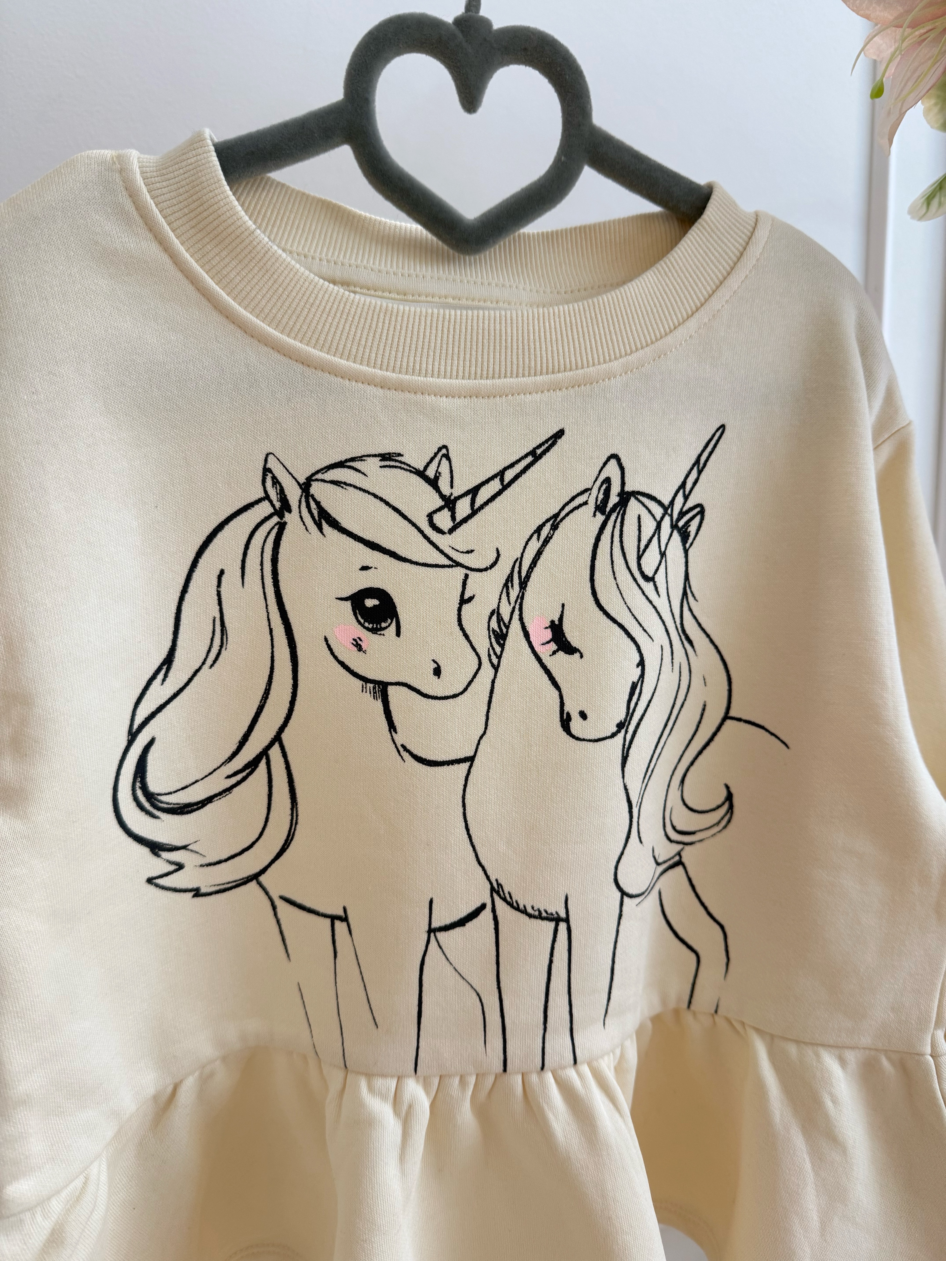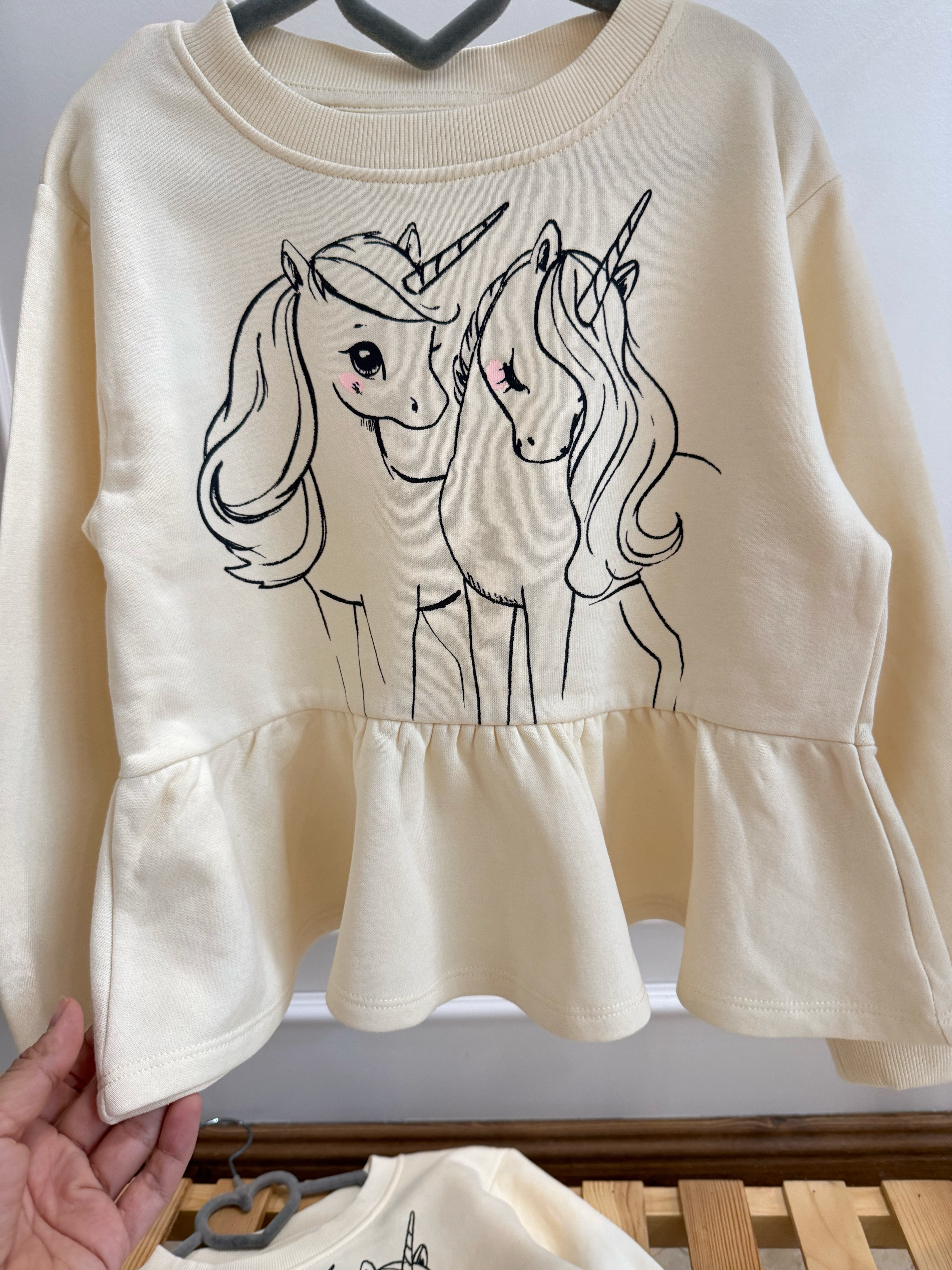 بلوز دخترانهی دورس داخل کرکی اچاندام (H&M) با طرح دوستداشتنی دو یونیکورن، انتخابی ایدهآل برای روزهای خنک پاییز و زمستان است.
