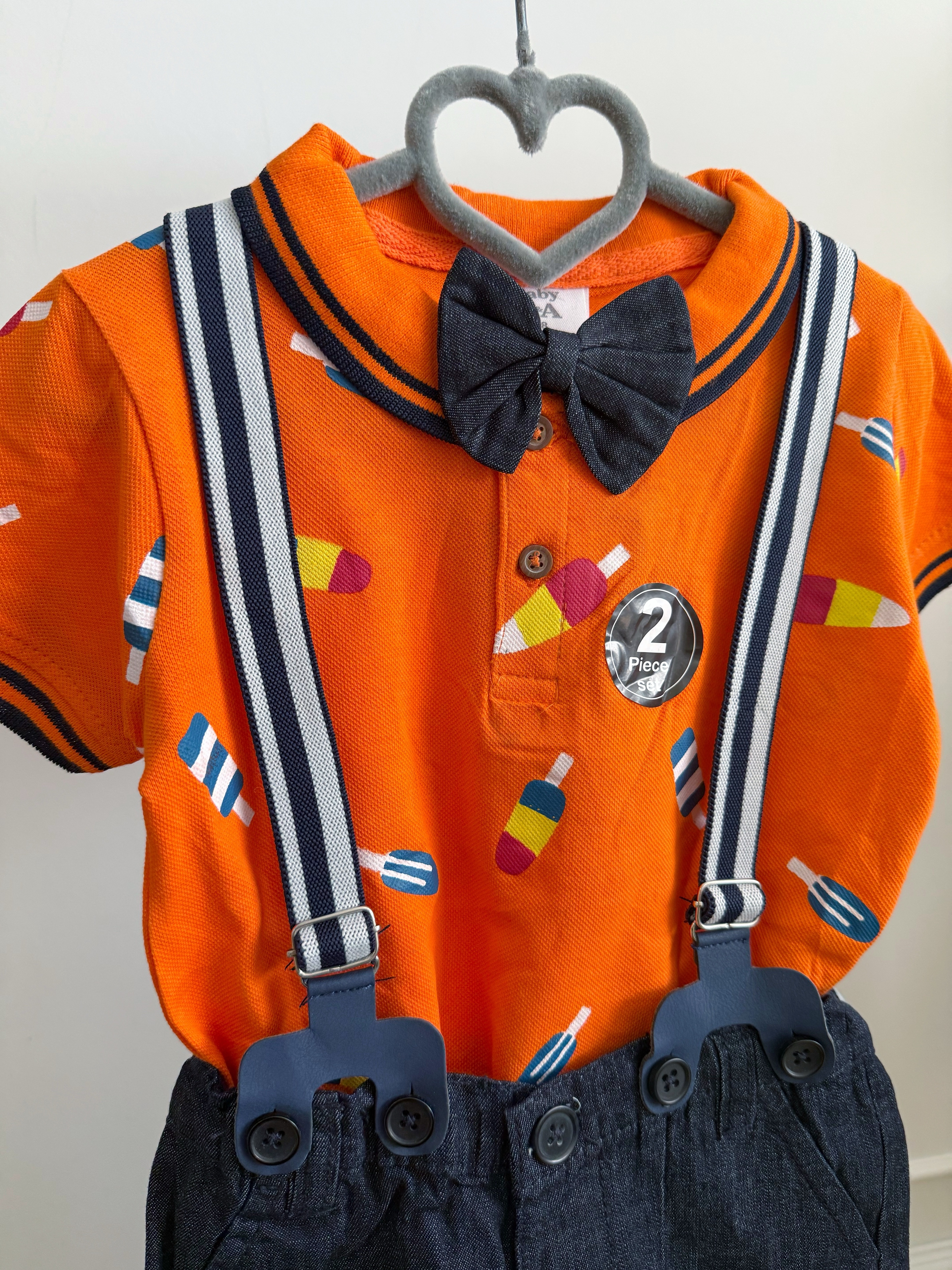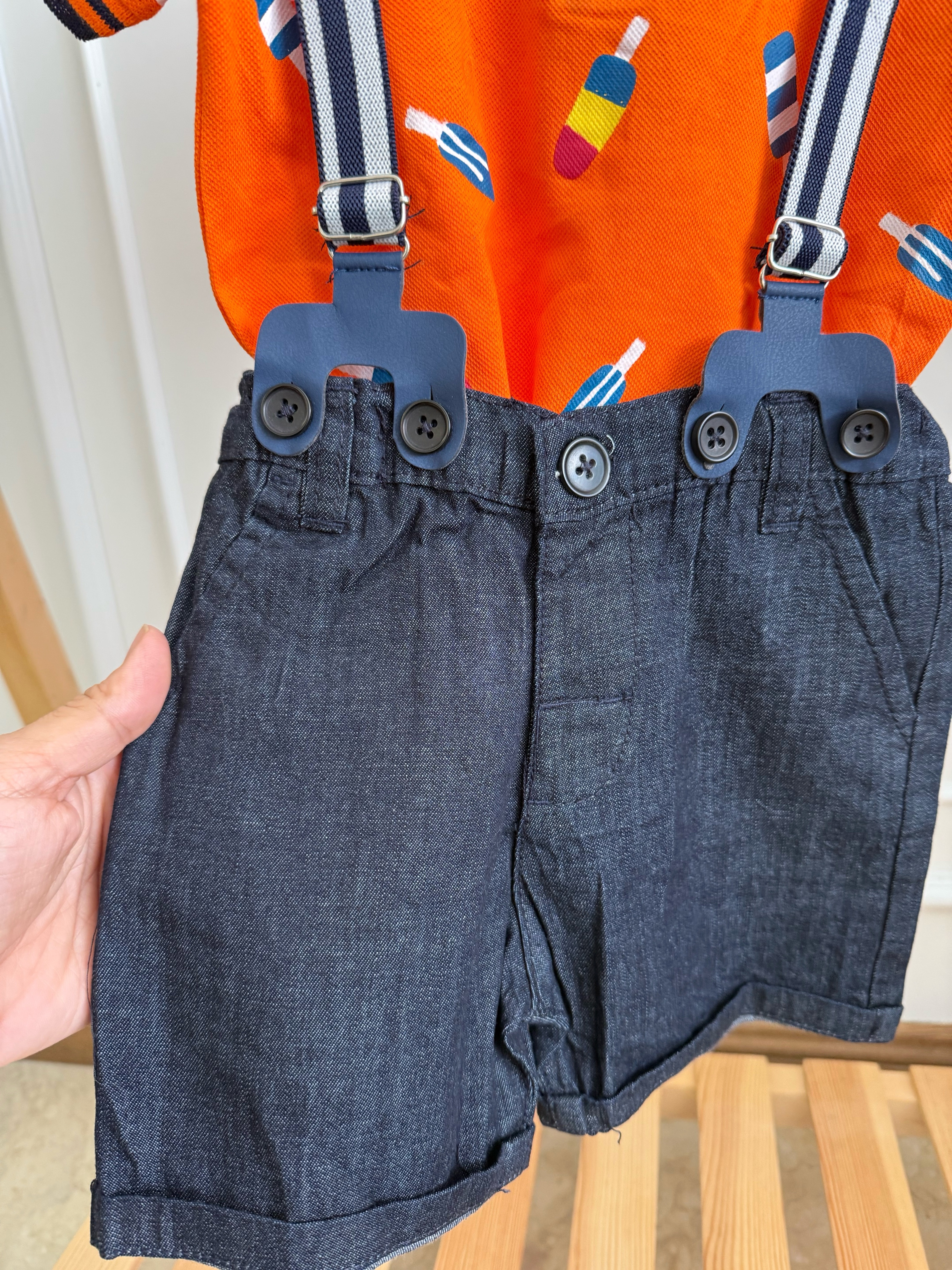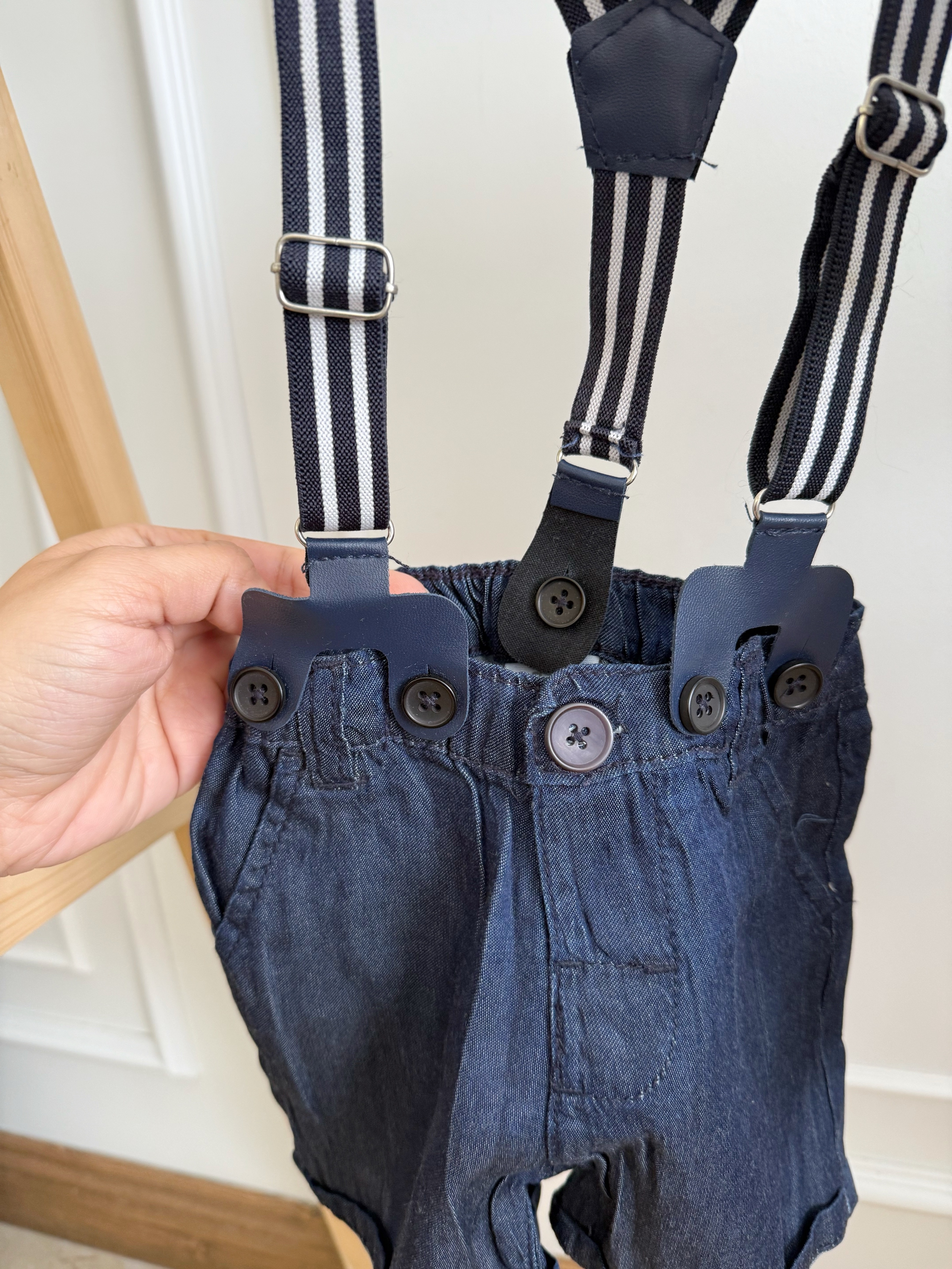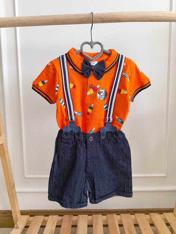 - **پک کامل شامل:** تیشرت پولوشرت، شلوارک کتان نخی، ساسبند کشی قابل تنظیم و پاپیون ست.