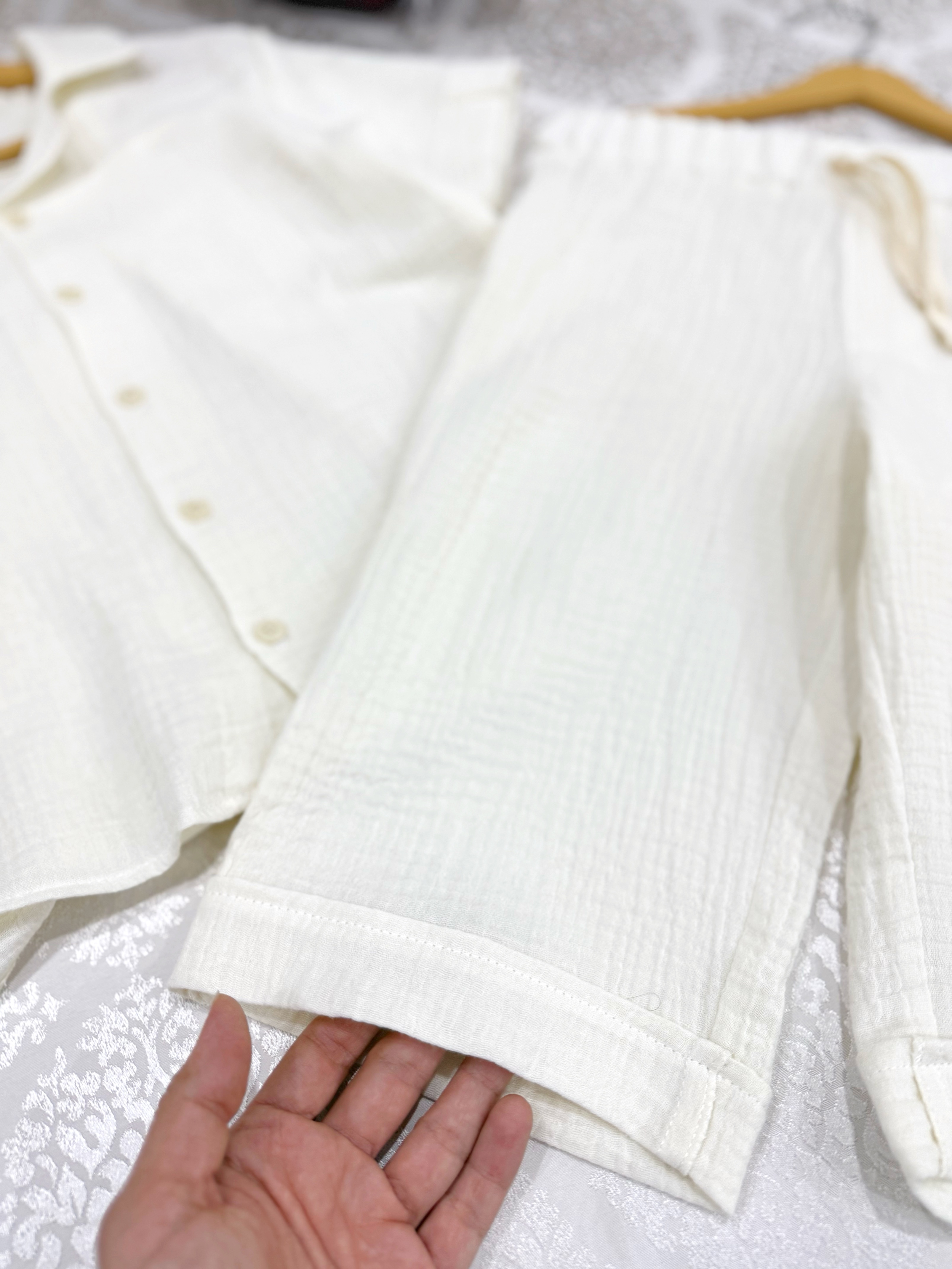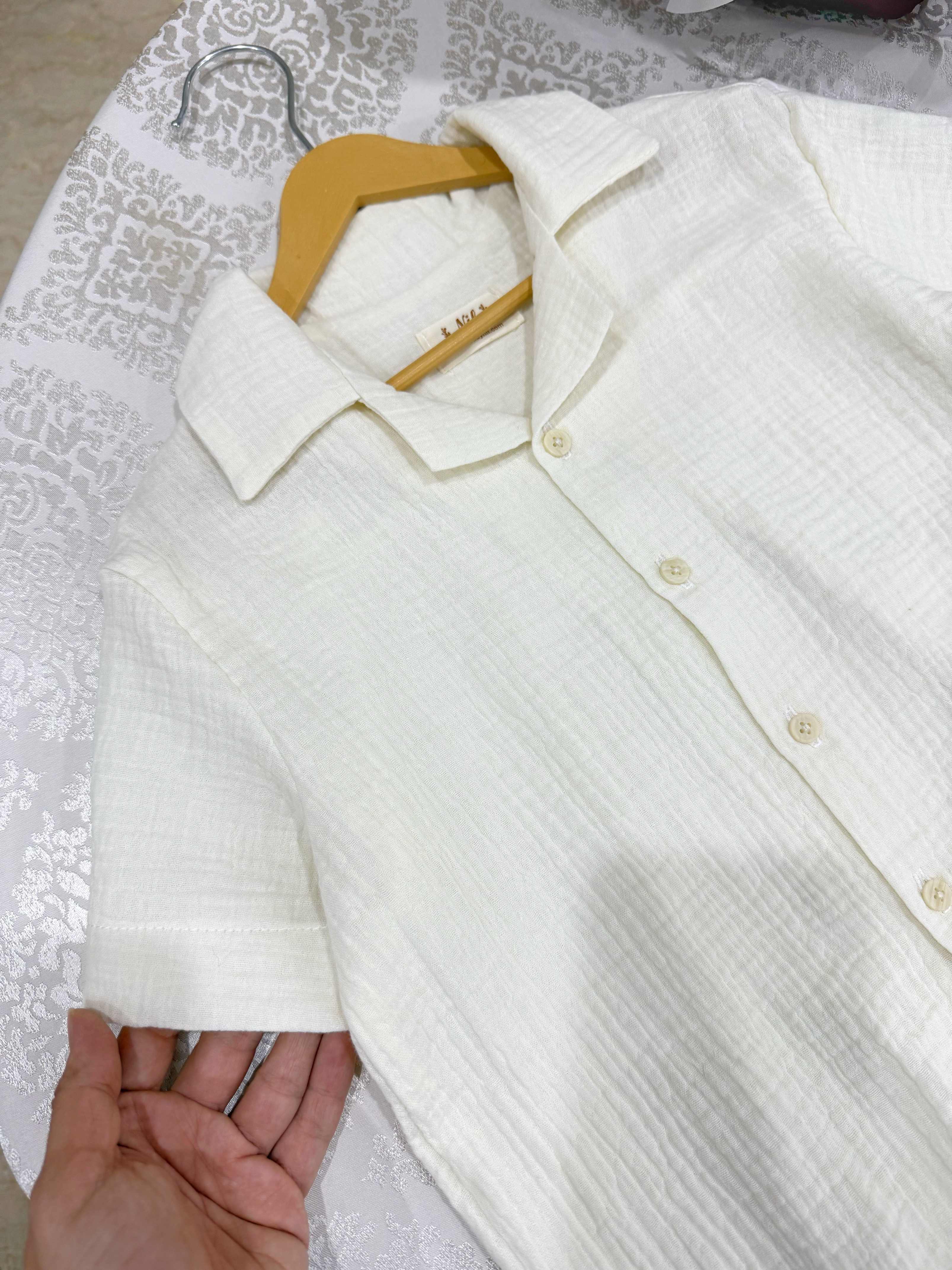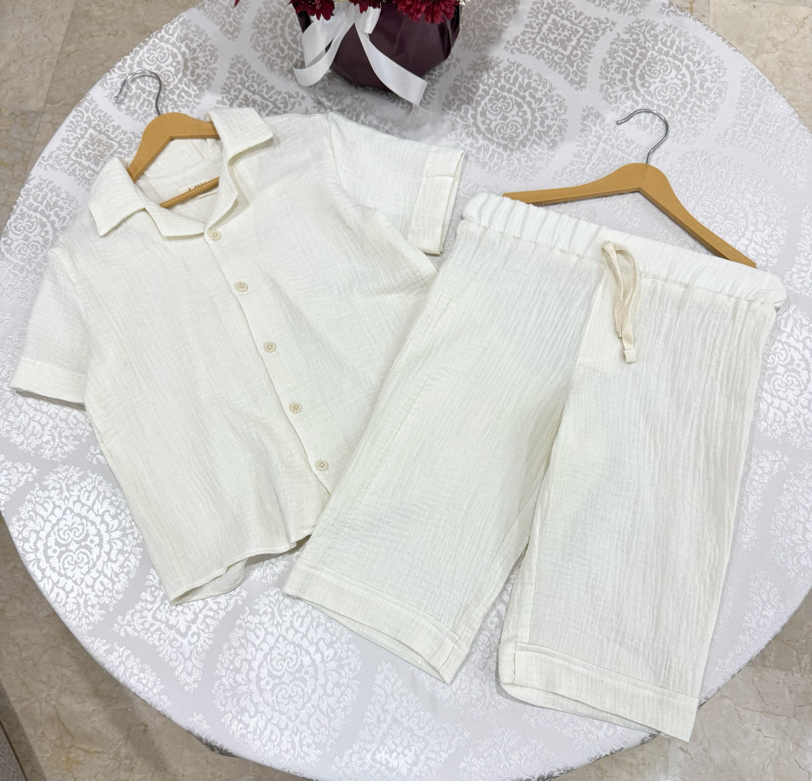 ست بلوز و شلوارک پسرانه موسلین شیری کد ۱۴۷۳